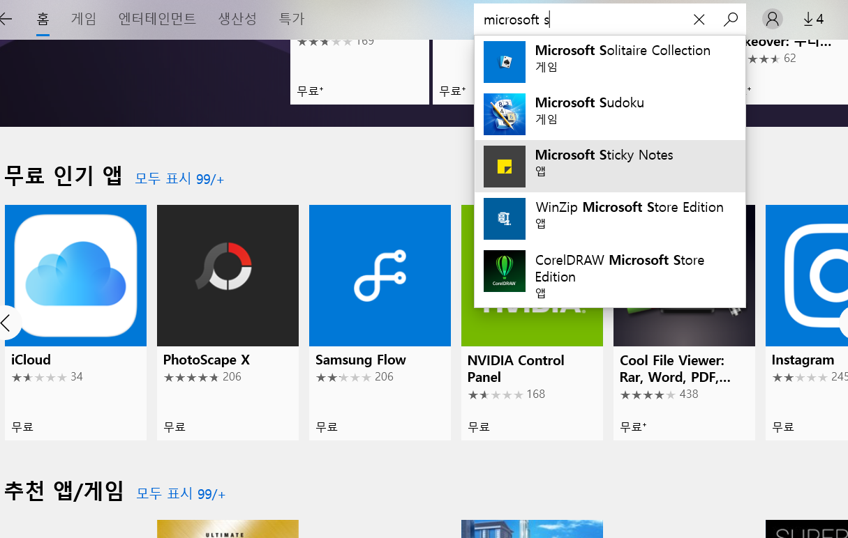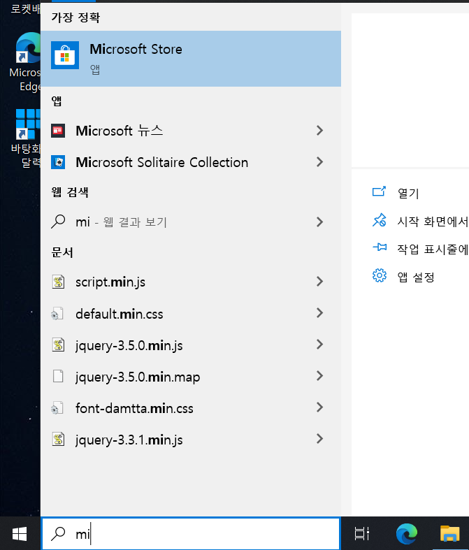 바로 위의 사진처럼 마이크로소프트 스토어를 윈도우키 검색창에 검색을 해서 들어가주세요.