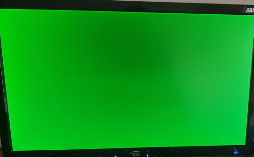 이게 흔히 발생하는 그린스크린 화면입니다. 이것은 그래픽카드의 문제로 인해서 뜬 그린스크린 화면입니다.